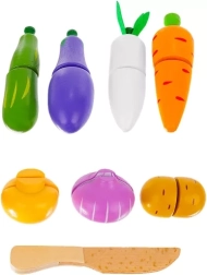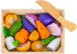 - καρότο, πατάτα, μανιτάρι, κρεμμύδι, αγγούρι, μελιτζάνα, κολράμπι, ξύλινο μαχαιράκι, ξύλινο καλαθάκι