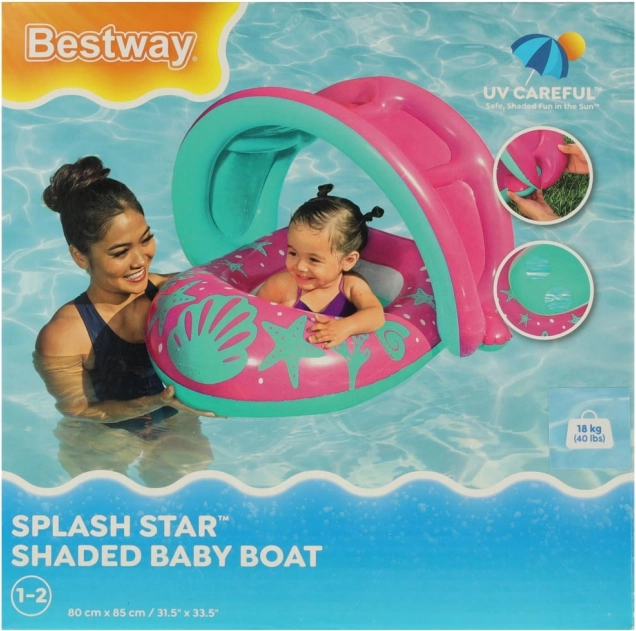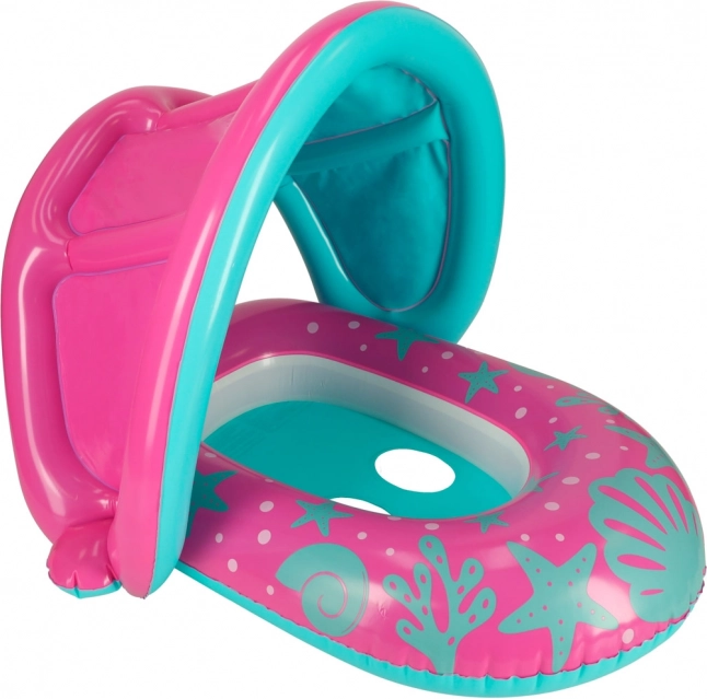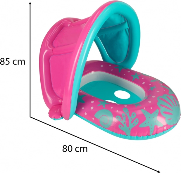 Το ροζ-μπλε παιδικό καθιστό κολύμβησης με τέντα είναι εξαιρετική επιλογή για νήπια που ξεκινούν την επαφή τους με το νερό. Η φουσκωτή τέντα προσφέρει σκιά και βοηθά στην προστασία της ευαίσθητης επιδερμίδας από τον ήλιο, ενώ αφαιρείται εύκολα όταν δεν χρειάζεται. Τα ανοίγματα για τα πόδια και το εργονομικό κάθισμα προσφέρουν σιγουριά και άνεση, ώστε το παιδί να απολαμβάνει με ασφάλεια τα παιχνίδια στο νερό.