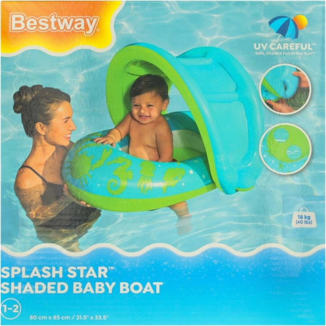 Ασφαλής και άνετη πρώτη γνωριμία με το νερό για τους μικρούς. Αυτό το παιδικό φουσκωτό καθισματάκι με σκίαστρο από την BESTWAY προσφέρει προστασία από τον ήλιο, άνετο κάθισμα με ανοίγματα για τα ποδαράκια και σταθερή κατασκευή από ανθεκτικό PVC. Ιδανικό για παιδιά 1–2 ετών (έως 18 kg).