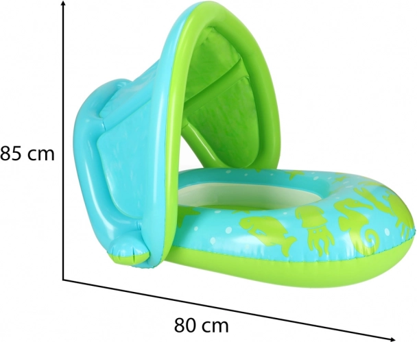 Απολαύστε καλοκαιρινές υδάτινες στιγμές με σιγουριά και ηρεμία. Το παιδικό καθισματάκι κολύμβησης με αποσπώμενο φουσκωτό σκίαστρο προστατεύει την ευαίσθητη επιδερμίδα του παιδιού από τις ηλιακές ακτίνες και προσφέρει ευχάριστη σκιά στην πισίνα ή στη θάλασσα.