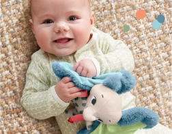 Αφράτα, μεγάλα αυτάκια και σατέν λεπτομέρειες προσκαλούν σε ζούληγμα, χάδι και εξερεύνηση διαφορετικών επιφανειών – ιδανικό για την ανάπτυξη της αφής και την ηρεμία πριν τον ύπνο.