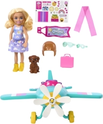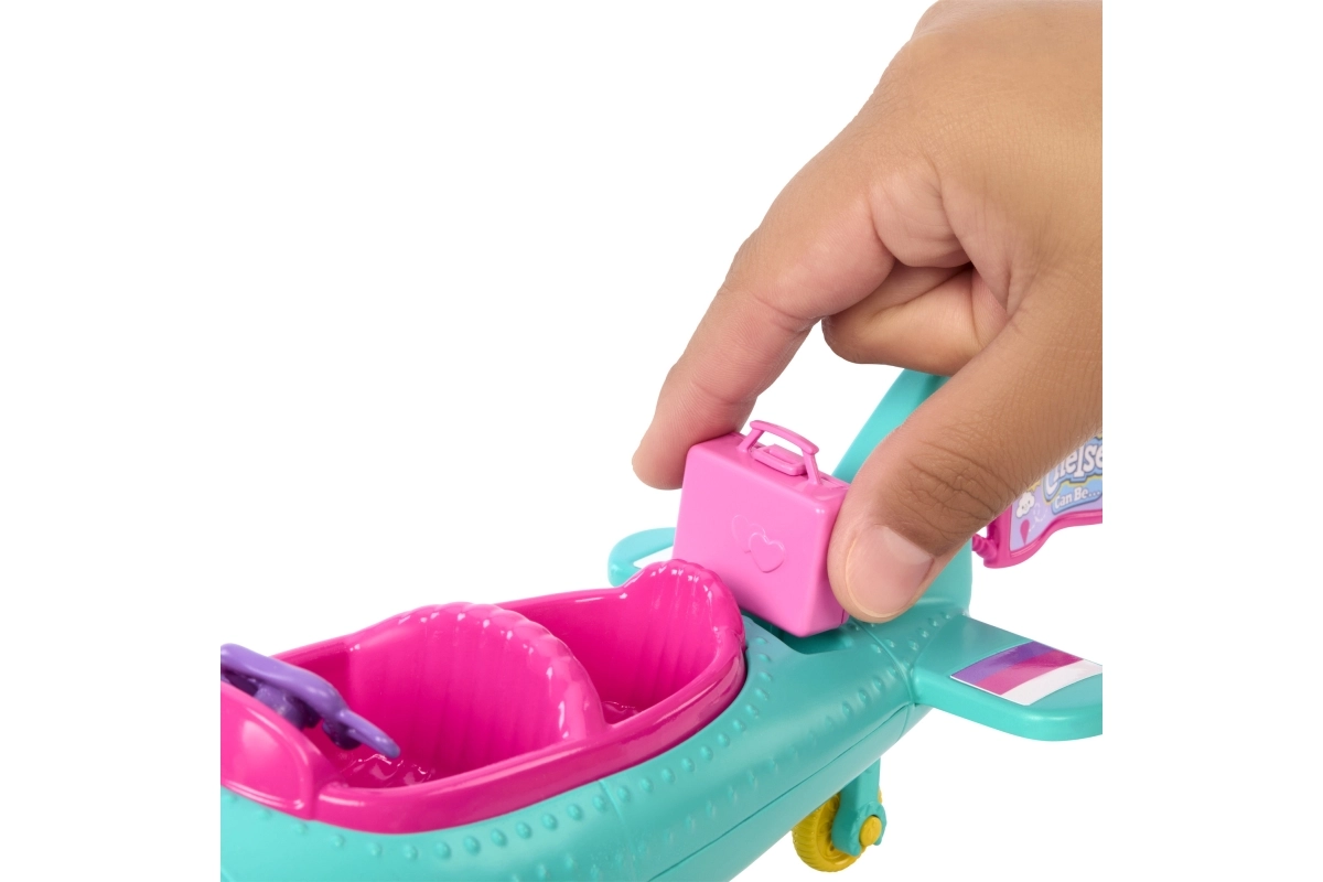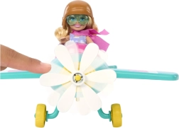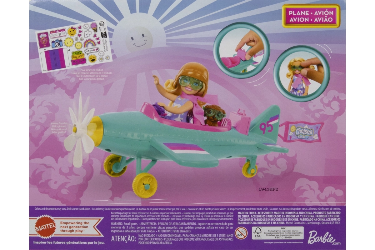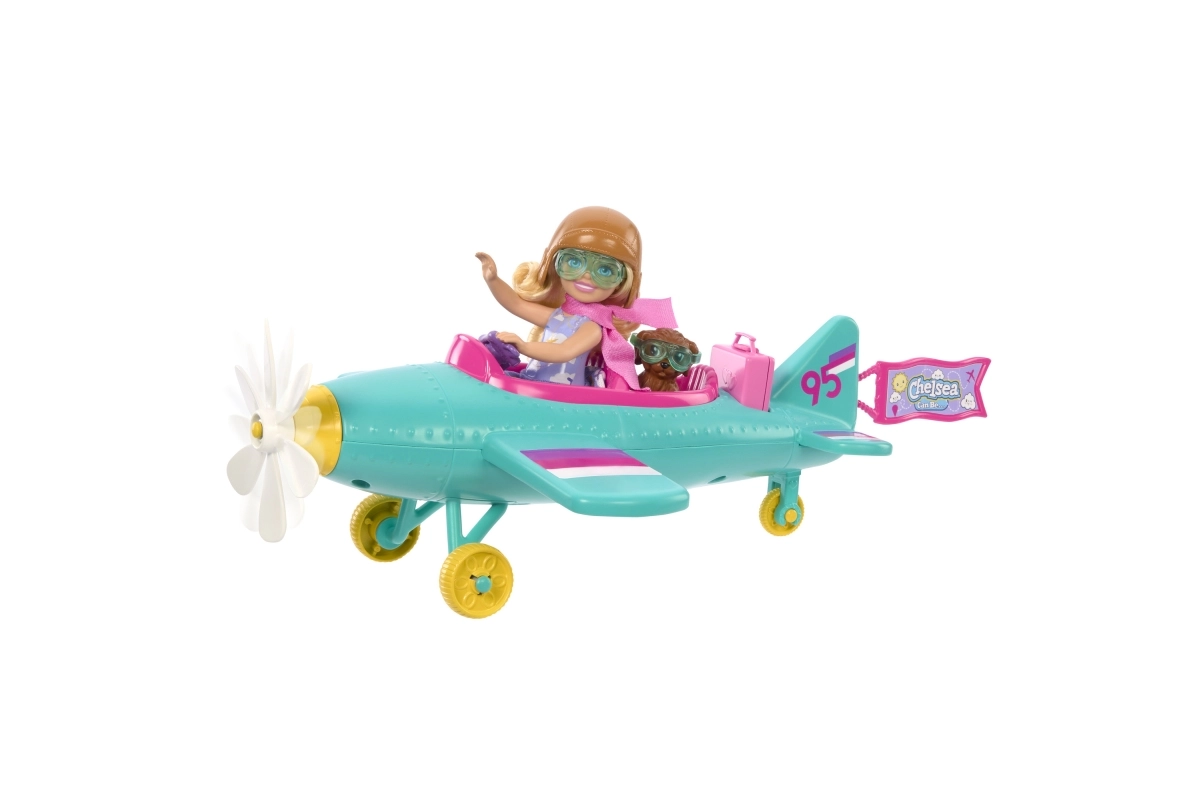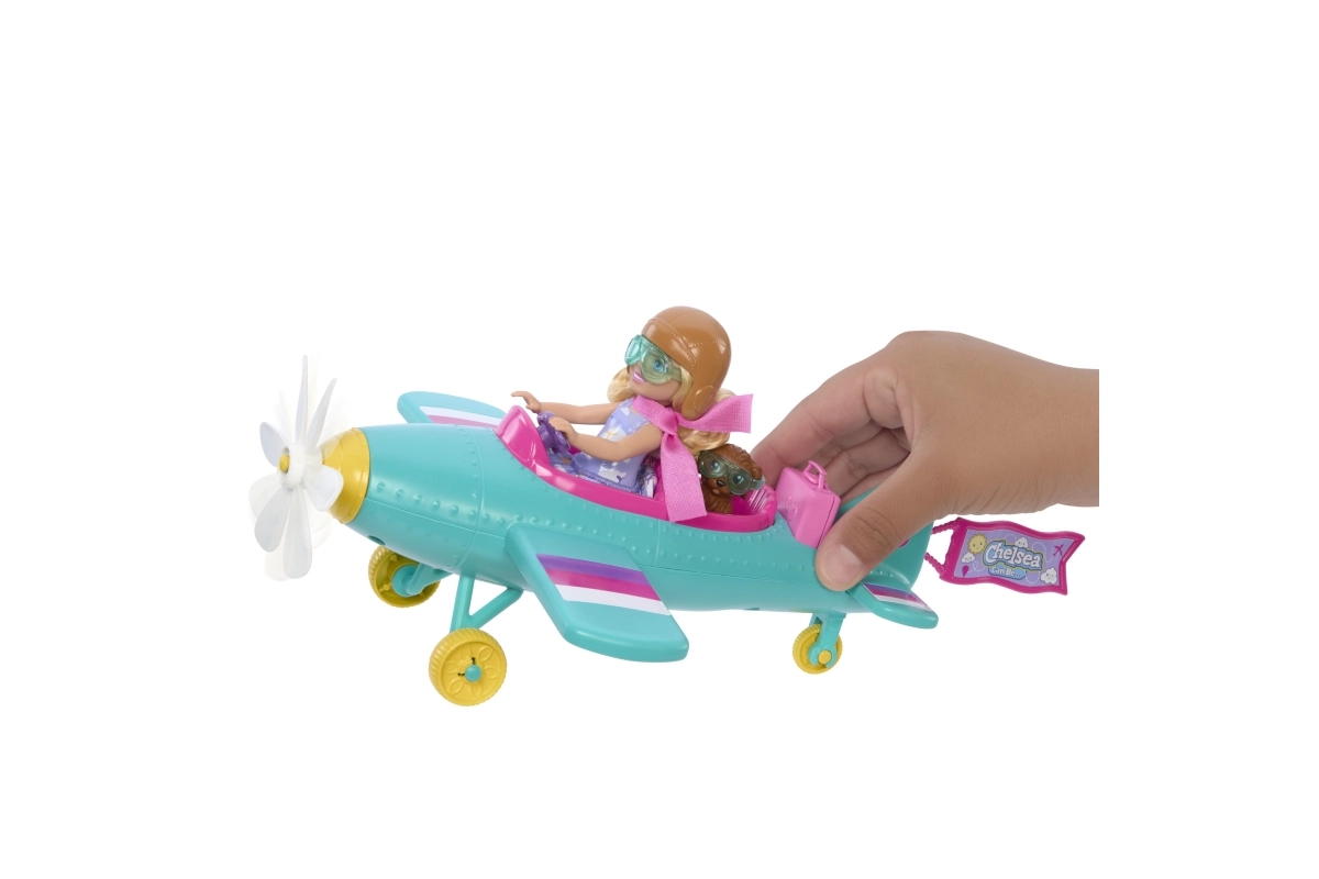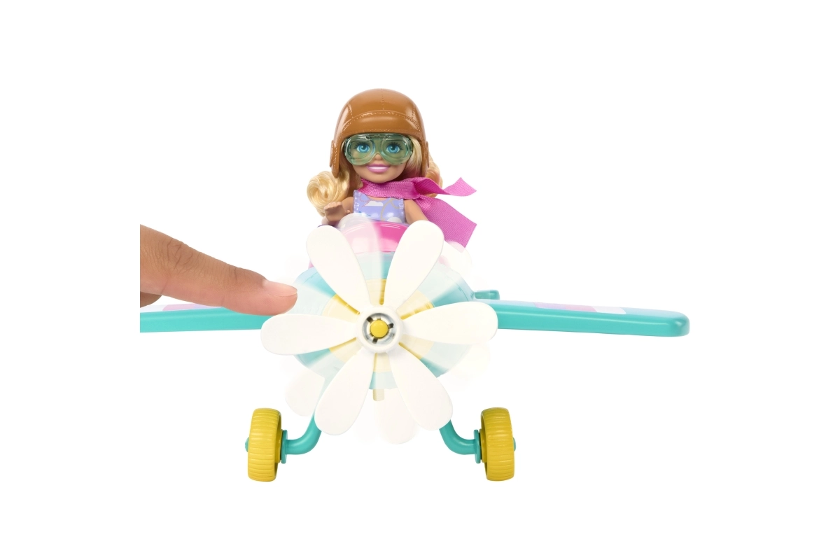 Με το σετ Barbie Chelsea Can Be τα παιδιά μπορούν να ονειρευτούν μεγαλόπνοα. Η μικρή πιλότος CHELSEA κάθεται στο διθέσιο αεροπλάνο με ζωηρά χρώματα, ενώ το πιστό κουταβάκι της επιβιβάζεται. Η περιστρεφόμενη λουλουδένια έλικα, οι ελεύθερα περιστρεφόμενοι τροχοί και η δυνατότητα να προσαρτηθεί σημαιάκι της Chelsea μετατρέπουν κάθε διαδρομή σε πτήση γεμάτη φαντασία.