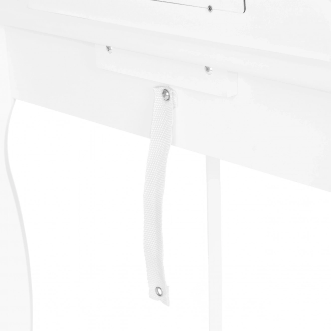 Χάρη στο ευρύχωρο συρτάρι τα παιδιά έχουν τα πάντα στο χέρι — στολίδια, λαστιχάκια και μικρούς θησαυρούς. Η μεγάλη επιφάνεια εργασίας προσφέρει αρκετό χώρο για χτένισμα, παιχνίδι-μακιγιάζ ή δημιουργικές δραστηριότητες. Το άνετο σκαμπό ταιριάζει με την τουαλέτα και εξασφαλίζει σωστή καθιστή στάση.