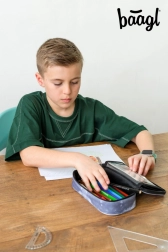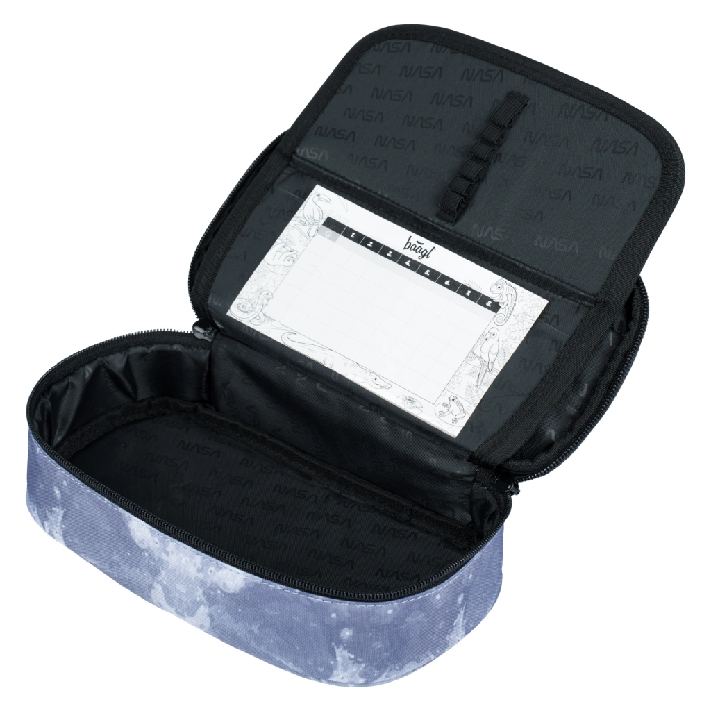 Πρακτική και ανθεκτική σχολική κασετίνα BAAGL με θέμα NASA που προσφέρει οργανωμένη αποθήκευση γραφικών ειδών χάρη στη πτυσσόμενη μεσαία θήκη, την εσωτερική τσέπη με φερμουάρ και την τσέπη για ωρολόγιο πρόγραμμα. Κατασκευασμένη από ανακυκλωμένο υλικό και εξοπλισμένη με ποιοτικά φερμουάρ YKK. Χωρίς περιεχόμενο.