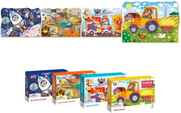 Η σειρά παζλ ΜΕΤΑΦΟΡΑ από τη μάρκα DODO προσφέρει υπέροχες εικονογραφήσεις μεταφορικών μέσων. Αυτό το συγκεκριμένο παζλ απεικονίζει οικοδομικές μηχανές και μπορεί να συνδεθεί με άλλες σκηνές, όπως φάρμα, διάστημα ή πυροσβεστική διάσωση.