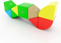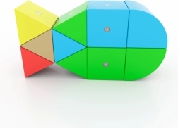 Τα 7 σχήματα και τα 5 έντονα χρώματα εμπνέουν τη δημιουργία ζώων, οχημάτων και αφηρημένων μοντέλων. Το βιβλιαράκι με οδηγίες βοηθά να ξεκινήσετε και να αναπτύξετε τη φαντασία.