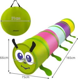 Το χαριτωμένο παιδικό τούνελ σε σχήμα κάμπιας θα ενθουσιάσει τους μικρούς εξερευνητές. Δύο είσοδοι/έξοδοι και μαλακή υφασμάτινη κατασκευή που προσκαλούν σε κρυφτό, αναρρίχηση και «αγώνες». Χάρη στον ελαστικό ατσάλινο σκελετό το τούνελ ανοίγει μόνο του και μετά το παιχνίδι διπλώνεται εύκολα πίσω στην compact θήκη.