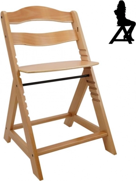 Η ξύλινη αναπτυσσόμενη καρέκλα φαγητού έχει σχεδιαστεί για μέγιστη άνεση και ασφάλεια παιδιών από έξι μηνών. Διαθέτει πολυεπίπεδη ρύθμιση ύψους καθίσματος και υποποδίου, ώστε να χρησιμοποιείται από την πρώιμη ηλικία έως και την ενηλικίωση. Όταν το παιδί μεγαλώσει, η μπροστινή μπάρα και ο διαχωριστής καβάλου μπορούν να αφαιρεθούν και η καρέκλα να μετατραπεί σε κανονική. Είναι κατασκευασμένη από ποιοτική γερμανική οξιά, προσφέροντας σταθερότητα και κομψότητα. Το μέγιστο φορτίο της είναι έως 90 κιλά.