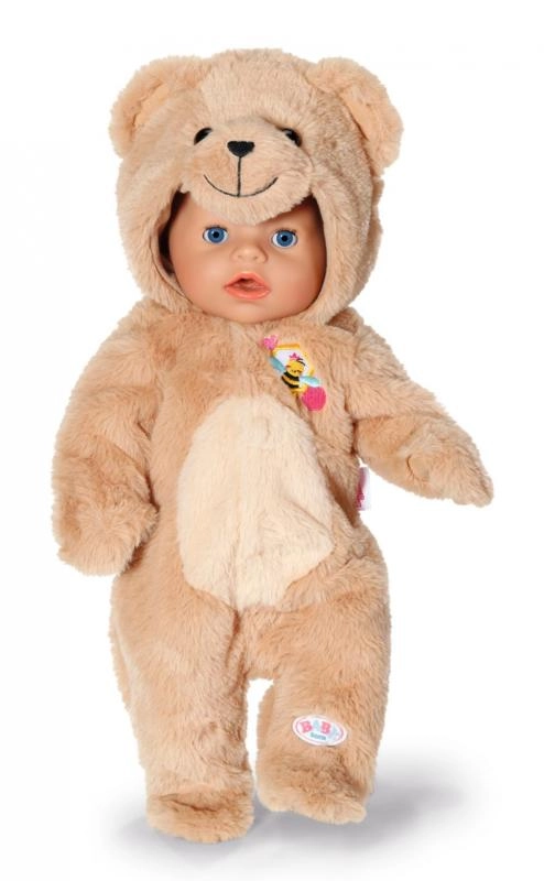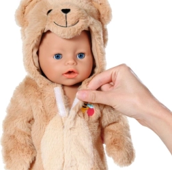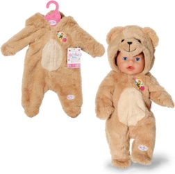 Χαριτωμένο αρκουδένιο ολόσωμο για κούκλες BABY BORN 43 cm που μεταμορφώνει την κούκλα σας σε ένα απαλό, αγκαλιάρικο μωρό. Ρουχαλάκι από πολύ μαλακό βελούδινο ύφασμα με κουκούλα και αυτάκια, ιδανικό για παιχνίδι και αγκαλιές. Περιλαμβάνεται και κρεμάστρα για εύκολη αποθήκευση. Εξαιρετικά απαλό υλικό, κουκούλα με αρκουδάκι και εύκολο κούμπωμα με φερμουάρ θα ενθουσιάσουν κάθε παιδί. Η κούκλα δεν περιλαμβάνεται. Κατάλληλο από 3 ετών.