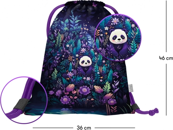 Ανακαλύψτε τον πρακτικό και trend σάκο πλάτης με μοτίβο πάντα και λουλουδιών. Χάρη στο ανθεκτικό, πλενόμενο υλικό είναι ιδανικός για παπούτσια, αθλητικό εξοπλισμό και μικροαντικείμενα για το σχολείο ή τις δραστηριότητες. Ο πολύχρωμος σχεδιασμός σε αποχρώσεις του μωβ, μπλε και πράσινου εντυπωσιάζει με την πρώτη ματιά.