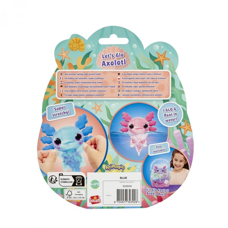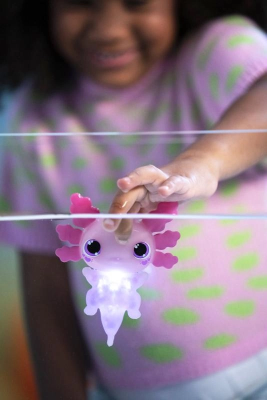 Το ροζ φωτιζόμενο αξολότλ ANIMAGIC μετατρέπει το μπάνιο σε πολύχρωμο θέαμα. Με την επαφή με το νερό ανάβει με απαλό φως που μαγνητίζει τα παιδιά και ενθαρρύνει τη φαντασία τους. Χάρη στο μαλακό και εύκαμπτο σώμα, το παιχνίδι είναι ευχάριστο στο ζούληγμα και στον χειρισμό, υποστηρίζοντας έτσι την ανάπτυξη της λεπτής κινητικότητας και της αισθητηριακής αντίληψης.