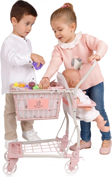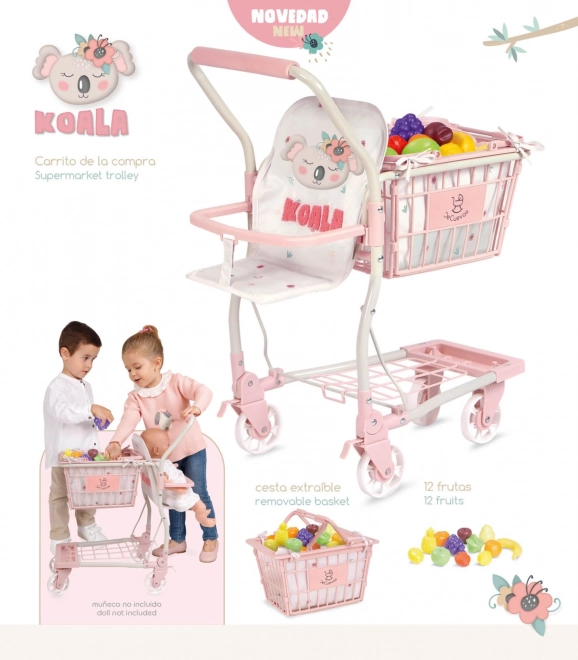 Το χαριτωμένο παιδικό καρότσι αγορών 2 σε 1 από τη συλλογή KOALA συνδυάζει μεγάλο τροχήλατο καλάθι με κάθισμα για κούκλα και αποσπώμενο χειροκίνητο καλάθι. Προσφέρει 12 κομμάτια πλαστικών φρούτων, περιστρεφόμενους μπροστινούς τροχούς, πίσω φρένα και χώρο αποθήκευσης στο κάτω μέρος. Η εύκολη χρήση, η ποιοτική κατασκευή και ο απαλός σχεδιασμός θα ενθουσιάσουν κάθε μικρή πωλήτρια.