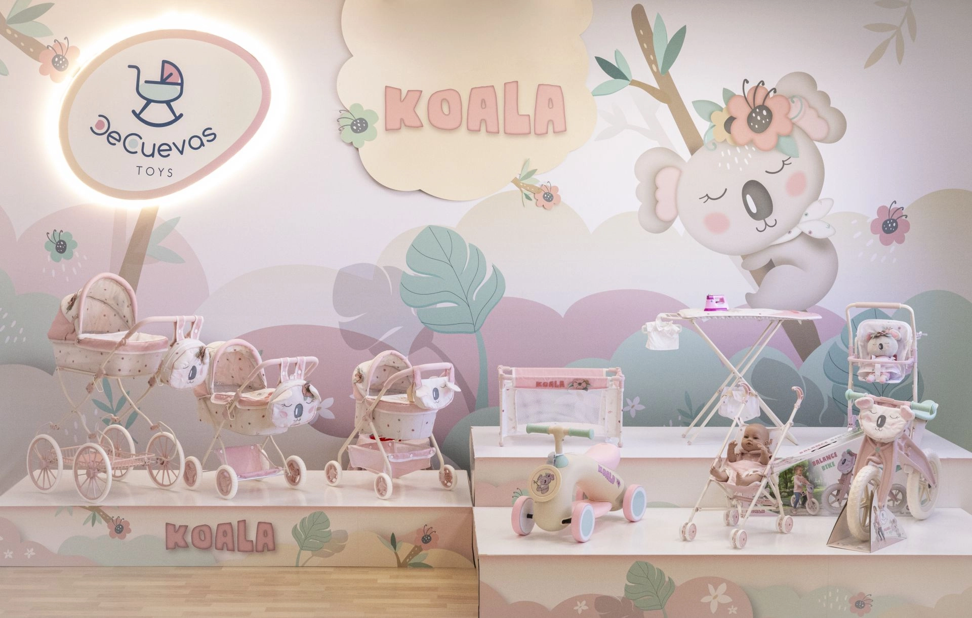 Η σταθερή κατασκευή από μέταλλο και πλαστικό, οι περιστρεφόμενοι μπροστινοί τροχοί και τα λειτουργικά φρένα στους πίσω τροχούς εξασφαλίζουν ασφαλή και εύκολο χειρισμό. Το απαλό μοτίβο KOALA με ανθάκια και ο ισπανικός σχεδιασμός προσδίδουν γοητεία που θα αγαπήσουν τα παιδιά.