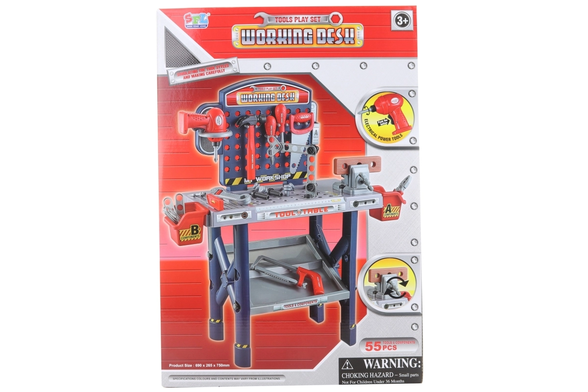 Σας παρουσιάζουμε τον παιδικό πάγκο εργασίας, ιδανικό για παιδιά από 3 ετών που αγαπούν να δημιουργούν και να επισκευάζουν. Αυτός ο στιβαρός πλαστικός πάγκος προσφέρει όλα όσα χρειάζονται οι μικροεπισκευαστές: