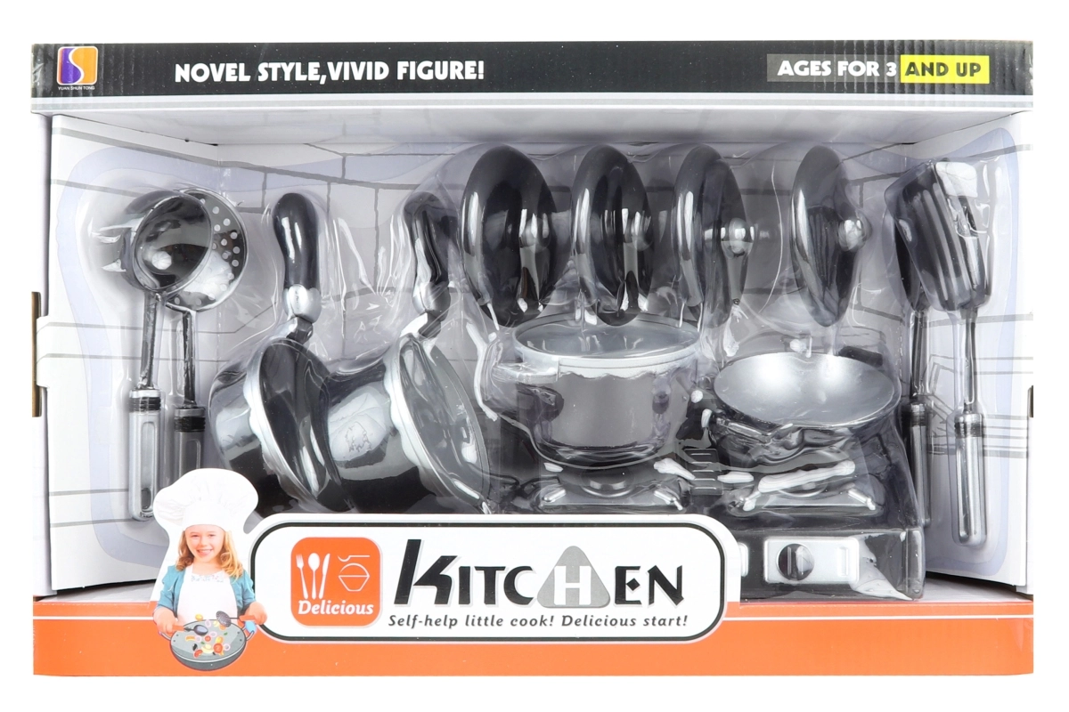 Περιλαμβάνει 3 κατσαρόλες, γουόκ, 4 καπάκια, εστία και επιπλέον αξεσουάρ για ρεαλιστικό παιχνίδι μαγειρέματος.