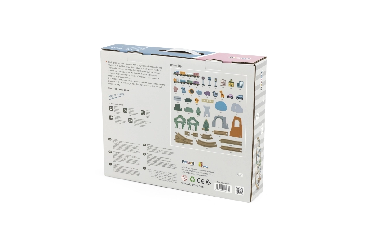 Οι λείες άκρες και τα μη τοξικά χρώματα με βάση το νερό είναι φιλικά προς τα παιδιά και το περιβάλλον. Ο σιδηρόδρομος είναι στιβαρός και έτοιμος για καθημερινό παιχνίδι.