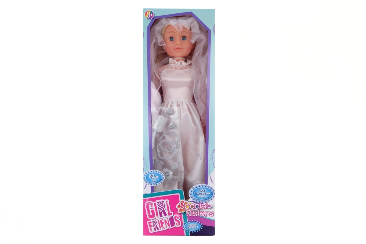 Η μεγάλη περπατούσα κούκλα σε στιλ νύφης θα χαροποιήσει κάθε μικρή πριγκίπισσα. Διαθέτει κινούμενα πόδια και χέρια, ώστε τα παιδιά να μπορούν να περπατούν πραγματικά μαζί της. Χάρη στο ύψος των 80 cm φαίνεται ρεαλιστική και γίνεται αγαπημένη σύντροφος για παιχνίδι και ανάπτυξη της φαντασίας.