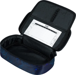 Η κασετίνα διαθέτει αναδιπλούμενο εσωτερικό χώρισμα και θήκη για ωρολόγιο πρόγραμμα, επιτρέποντας αποτελεσματική οργάνωση των σχολικών ειδών.