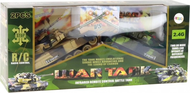 Δύο ρεαλιστικά τηλεκατευθυνόμενα άρματα με σύστημα μάχης υπερύθρων προσφέρουν συναρπαστική δράση για δύο παίκτες. Κάθε άρμα έχει μήκος 44 cm, περιστρεφόμενο πύργο κατά 300°, λαστιχένιους ερπύστριες για εξαιρετική πρόσφυση και έλεγχο 2.4 GHz χωρίς παρεμβολές. Σύστημα ζωών με τέσσερις ενδείξεις, ηχητικά εφέ κινητήρα και βολών, ταχύτητα έως 7–8 km/h και πλούσια αξεσουάρ συμπεριλαμβανομένων συσσωρευτών και φορτιστών εξασφαλίζουν ρεαλιστική μάχη και μεγάλη αυτονομία.