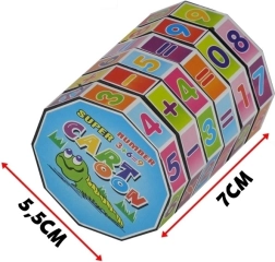 Ένας πολύχρωμος κυλινδρικός γρίφος με περιστρεφόμενους δακτυλίους βοηθά τα παιδιά να κατακτήσουν παιγνιωδώς τις βασικές αρχές των μαθηματικών. Με αριθμούς και σύμβολα τα παιδιά εξασκούν πρόσθεση, αφαίρεση, πολλαπλασιασμό και διαίρεση οπουδήποτε και οποτεδήποτε. Η ανθεκτική κατασκευή από ασφαλή υλικά πληροί το πρότυπο EN 71, είναι κατάλληλη από 3 ετών και οι συμπαγείς διαστάσεις 7 × 5,5 cm την καθιστούν ιδανικό βοήθημα για ταξίδια.