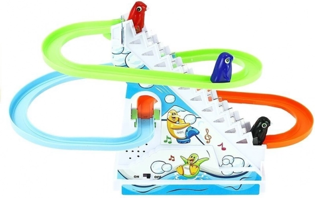 Αυτό το σετ παιχνιδιού με κινούμενες σκάλες προσφέρει διαδραστικό παιχνίδι, όπου οι πιγκουίνοι γλιστρούν στις πίστες ενώ ακούγεται ρυθμική μελωδία. Ασφαλές παιχνίδι σχεδιασμένο με γνώμονα τα μικρότερα παιδιά, που αγαπούν τη ζωηρή και πολύχρωμη διασκέδαση.