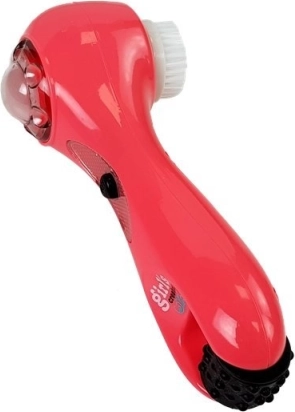 Κόκκινος χειροκίνητος μασέρ με βούρτσα-εξάρτημα και κεφαλές μασάζ για προσωπική φροντίδα.