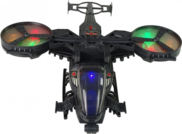 Το ελικόπτερο διαθέτει μεγάλους περιστρεφόμενους έλικες που φωτίζονται σε διάφορα χρώματα και συνοδεύονται από ηχητικά εφέ που μιμούνται εκκίνηση και πυροβολισμούς. Χάρη στους τροχούς στο κάτω μέρος, το ελικόπτερο μπορεί να κινείται στο έδαφος.