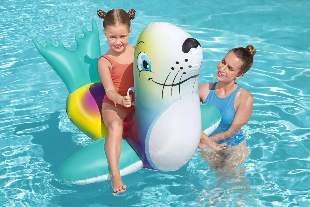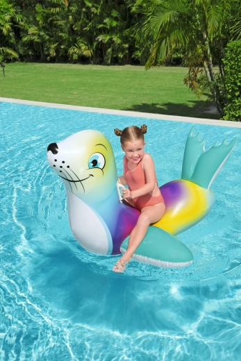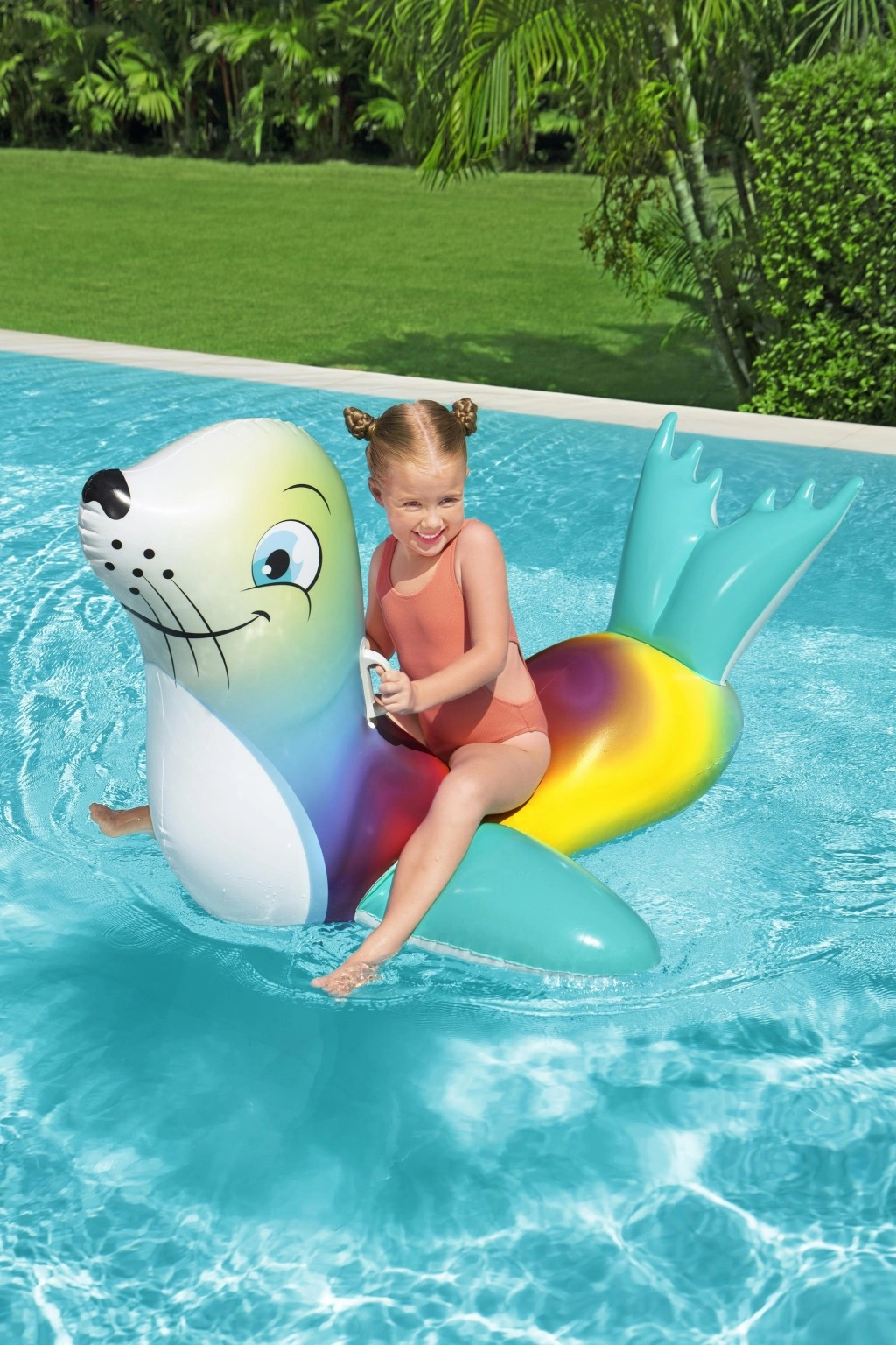 Απολαύστε ξέγνοιαστες καλοκαιρινές στιγμές με τη χρωματιστή φουσκωτή φώκια, ιδανική για παιδιά από 3 ετών. Οι δύο πρακτικές χειρολαβές εξασφαλίζουν σταθερό κράτημα και καλύτερη ισορροπία, ενώ η λεία, ανθεκτική επιφάνεια προσφέρει άνεση στο παιχνίδι και στη χαλάρωση στο νερό.