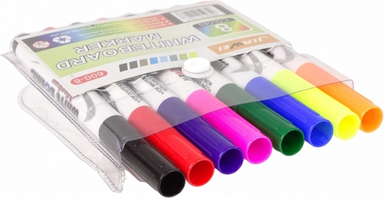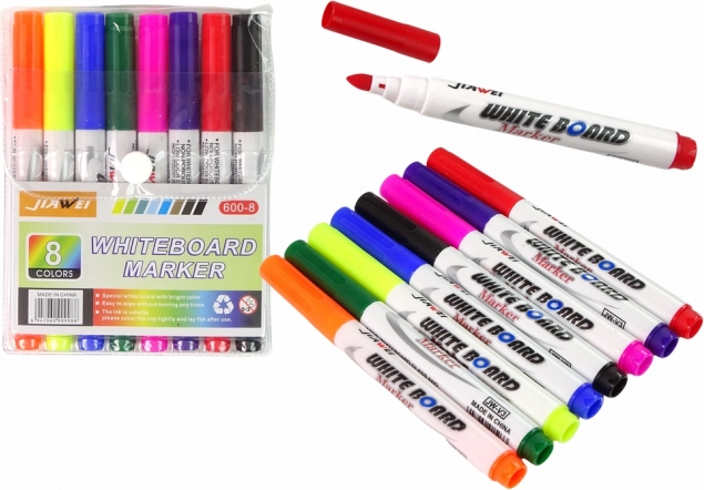 Το σετ περιλαμβάνει 8 ζωηρά χρώματα που ενισχύουν τη δημιουργικότητα των παιδιών αλλά και την παρουσίασή σας στο σχολείο ή το γραφείο. Οι μαρκαδόροι έχουν εύκολα σβηνόμενη επιφάνεια σε λευκούς πίνακες και λεία υλικά, ώστε το καθάρισμα να γίνεται σε μια στιγμή.