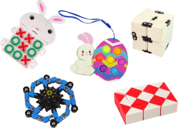 Πλήρες σετ από κύβους μέχρι pop it και αναπηδητά παιχνίδια. Τέλειο μείγμα για αισθητηριακό παιχνίδι, ανταμοιβές και δωράκια για πασχαλινά καλάθια.
