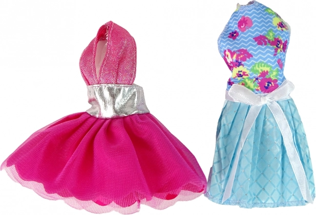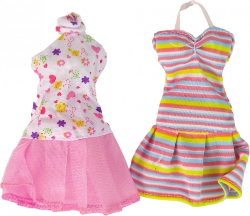 Περιλαμβάνονται 4 εναλλασσόμενα φορέματα (με τιράντες, βραδινό ροζ με γκλίτερ, μπλε με φλοράλ μοτίβο και φιόγκο, απαλό ροζ-λευκό με λουλούδια και καρδούλες), δύο τσάντες, καπέλο και εφεδρικά παπούτσια. Όλα είναι τακτοποιημένα σε δώρο-συσκευασία με παράθυρο, που εντυπωσιάζει με την πρώτη ματιά.