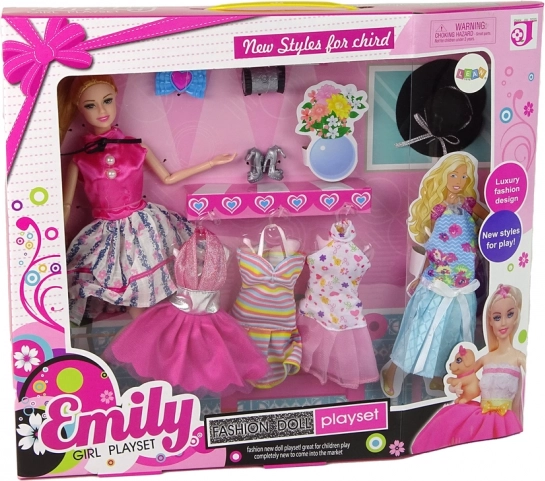 Η κούκλα Emily θα χαροποιήσει κάθε μικρή στυλίστρια. Φορά κομψό σύνολο με ροζ τοπ και φαρδιά φούστα με λουλούδια, που ολοκληρώνεται με μαύρες γόβες. Χάρη στις κινητές αρθρώσεις μπορείτε εύκολα να τη ρυθμίσετε σε διάφορες πόζες. Το σετ περιλαμβάνει περισσότερα φορέματα και αξεσουάρ, ώστε κάθε μέρα να δείχνει διαφορετική.