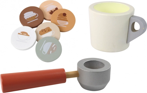 Η ποιοτική σύνθεση ξύλου και πλαστικού είναι ανθεκτική και ευχάριστη στην αφή. Το παιχνίδι με την καφετιέρα αναπτύσσει τη λεπτή κινητικότητα, τον συντονισμό ματιού–χεριού και τις κοινωνικές δεξιότητες στο ομαδικό παιχνίδι. Χάρη στις μικρές διαστάσεις της, η καφετιέρα μεταφέρεται και αποθηκεύεται εύκολα.