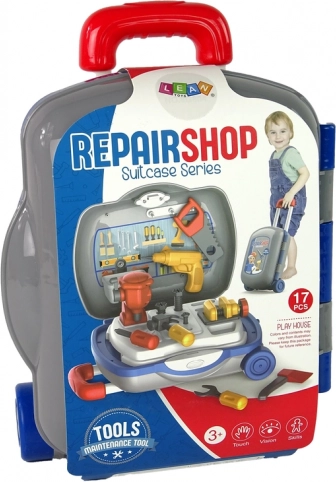 Το κινητό βαλιτσάκι με εργαλεία μετατρέπει κάθε παιδί σε μικρό επισκευαστή. Το σετ περιλαμβάνει ασφαλή πλαστικά εργαλεία και επιφάνεια εργασίας για παιχνίδι στο σπίτι ή στο ταξίδι. Η 17μελής σειρά, το βαλιτσάκι με ροδάκια και ανασυρόμενη λαβή και η εύκολη αποθήκευση ενισχύουν την δημιουργικότητα και τη λεπτή κινητικότητα. Κατάλληλο από 3 ετών, συμμορφώνεται με EN71 και CE.