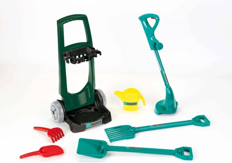 Παιδικό σετ κήπου με καροτσάκι με ρόδες από τη μάρκα KLEIN με άδεια BOSCH, που προσφέρει ρεαλιστικά εργαλεία για τον μικρό κηπουρό. Περιλαμβάνει ανθεκτικό πλαστικό καροτσάκι με ρόδες, φτυάρι, τσουγκράνα, ομοίωμα χλοοκοπτικής μηχανής, ποτιστήρι, σκαλιστήρι και μικρή τσουγκράνα. Υπέροχη επιλογή για ενεργό παιχνίδι στον κήπο, ανάπτυξη κινητικών δεξιοτήτων και ασφαλή συμμετοχή στις δουλειές των ενηλίκων.