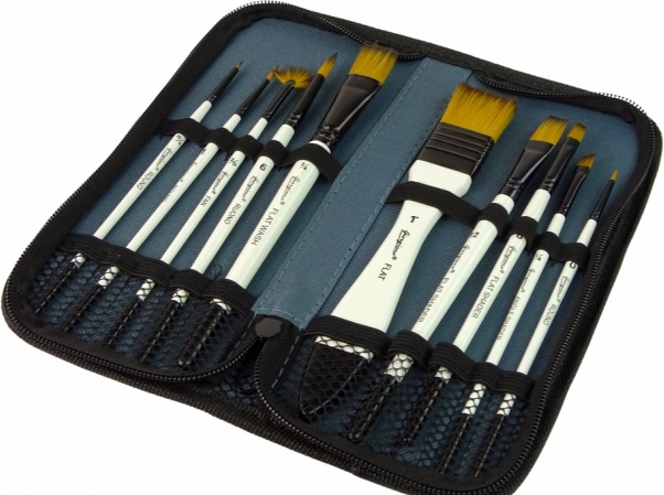 Αυτό το καλλιτεχνικό σετ προσφέρει ευρεία επιλογή πινέλων με διαφορετικά σχήματα και μεγέθη, που σας επιτρέπουν δημιουργική ελευθερία στη ζωγραφική. Περιλαμβάνει πινέλα για λεπτές και έντονες γραμμές, γέμισμα επιφανειών, ανάμειξη χρωμάτων και ακριβές περίγραμμα. Κάθε πινέλο διαθέτει μαλακές τρίχες, εξασφαλίζοντας ομαλή και ακριβή πινελιά. Οι ξύλινες λαβές προσφέρουν άνεση και απόλυτο έλεγχο του πινέλου.