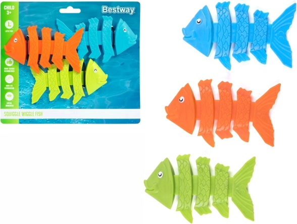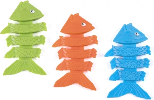 Το σετ διασκεδαστικών καταδυτικών ψαριών σάς επιτρέπει να μετατρέψετε κάθε μπάνιο σε περιπέτεια. Τρία πολύχρωμα ψαράκια (πορτοκαλί, πράσινο και μπλε) είναι σχεδιασμένα να βυθίζονται στον πάτο και να ενθαρρύνουν τα παιδιά να καταδύονται. Το παιχνίδι τα βοηθά να αναπτύξουν την κινητική συντονιστική ικανότητα και να βελτιώσουν τις κολυμβητικές δεξιότητες.