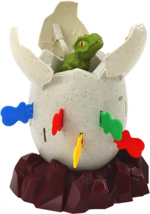 Ο δεινόσαυρος που πετάγεται δεν είναι απλώς ένα συνηθισμένο παιχνίδι – είναι μια εμπειρία που φέρνει απρόσμενες στιγμές γεμάτες χαρά και εκπλήξεις για όλη την οικογένεια. Τοποθετήστε το αυγό του δεινόσαυρου στη καφέ βάση και εισάγετε τις φιγούρες δεινοσαύρων μέσα. Έπειτα περάστε τα πλαστικά καλαμάκια γύρω από το αυγό. Το παιχνίδι φαίνεται απλό, αλλά όταν τοποθετήσετε το καλαμάκι στο σωστό σημείο, ο δεινόσαυρος πετάγεται ξαφνικά από το αυγό! Αυτό χαρίζει διασκέδαση και γέλιο σε όλους τους παίκτες.