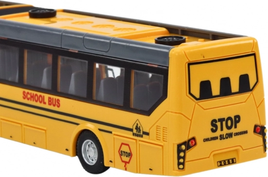 Πιστή αναπαράσταση σχολικού λεωφορείου με φώτα στην καμπίνα, που προσφέρει αυθεντική εμπειρία οδήγησης και ενθαρρύνει δημιουργικό παιχνίδι.