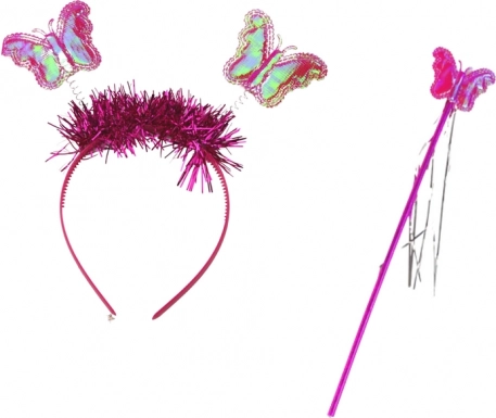 Το σετ συμπληρώνεται από παιχνιδιάρικο στεφανάκι με πεταλούδες και ροζ ραβδί, χαρίζοντας αληθινή μαγεία στη μεταμφίεση των παιδιών.