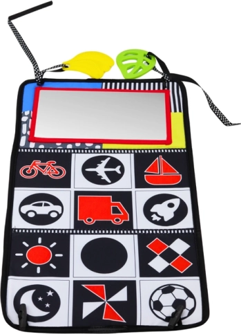 Το καθρεφτάκι ενθαρρύνει την ανακάλυψη της δικής του εικόνας, ενώ το θροΐζον βιβλιαράκι προσφέρει επιπλέον αισθητηριακή διέγερση.