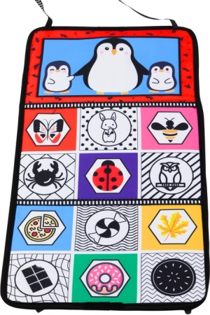 Το χαλάκι διαθέτει έντονα μοτίβα που υποστηρίζουν την οπτική διέγερση και την ανάπτυξη της αίσθησης της αντίθεσης.