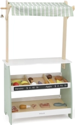 Ξύλινος πάγκος παιχνιδιού από τη μάρκα Viga θα προσφέρει στα παιδιά σας ένα ανώτερο επίπεδο διασκέδασης στο παιχνίδι ρόλων ως πωλητές. Κατασκευασμένος από στιβαρό ξύλο και βαμμένος σε παστέλ αποχρώσεις του πράσινου, αυτός ο πάγκος γοητεύει όχι μόνο με την εμφάνισή του αλλά και με τη λειτουργικότητά του. Δύο ράφια, υφασμάτινη τέντα και ένα μικρό κουδουνάκι τον καθιστούν ιδανική γωνιά για φανταστικό παιχνίδι.