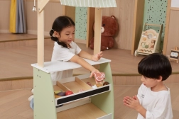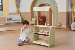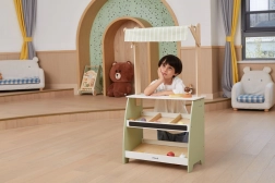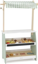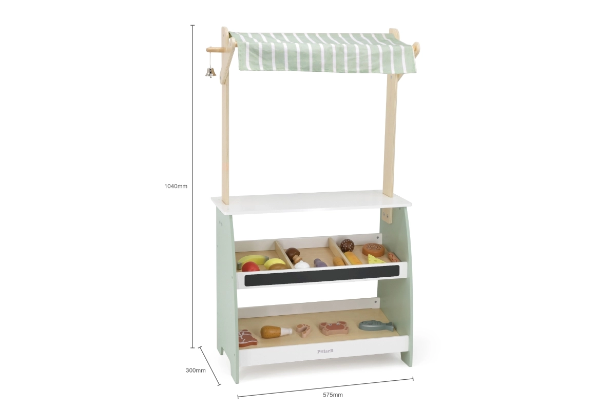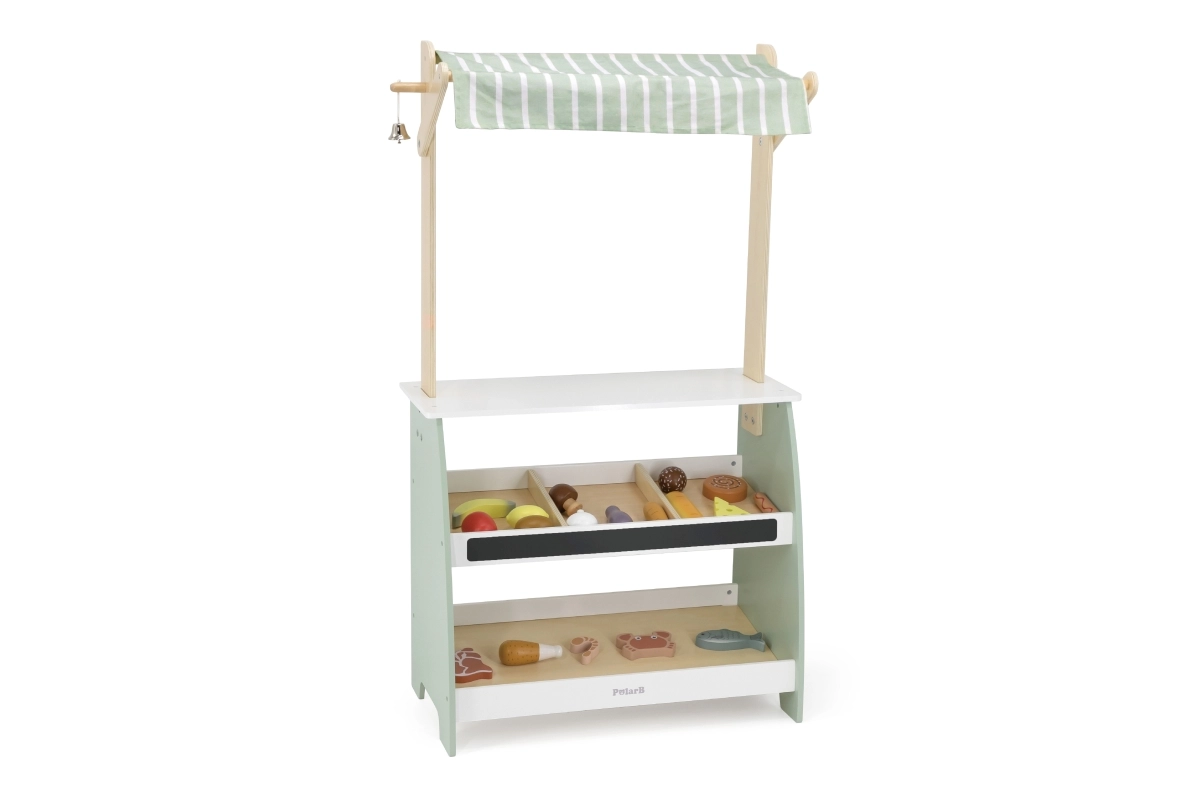 Ο πάγκος έχει δημιουργηθεί με προσοχή στη λεπτομέρεια, όπως τα ράφια και το κουδουνάκι, που ενισχύουν τη φαντασία των παιδιών.
