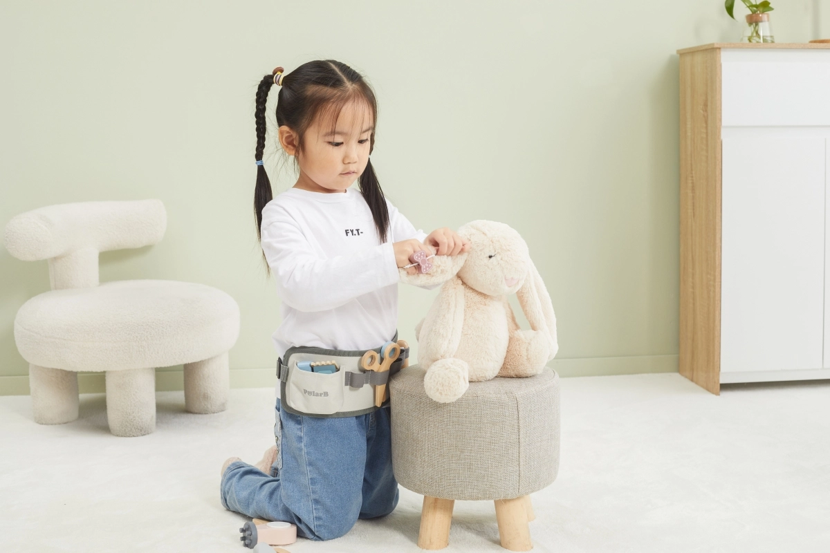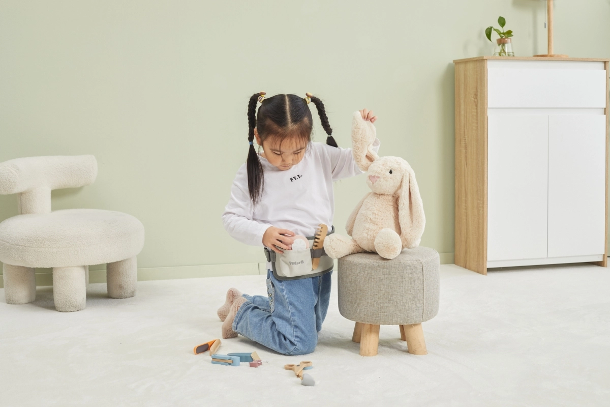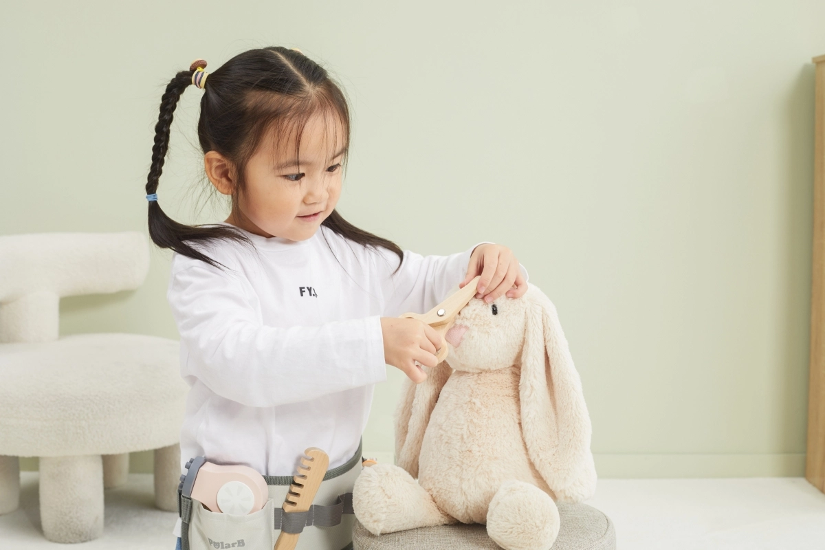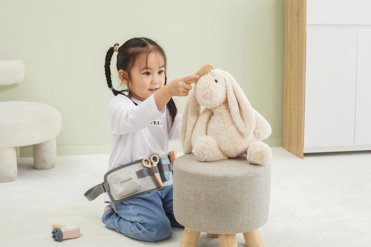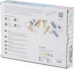 Χάρη στα διάφορα ξύλινα εργαλεία όπως ψαλίδι, χτένα και πιστολάκι, αυτό το σετ προσφέρει ό,τι χρειάζεται για δημιουργικό παιχνίδι ρόλων κομμωτή.