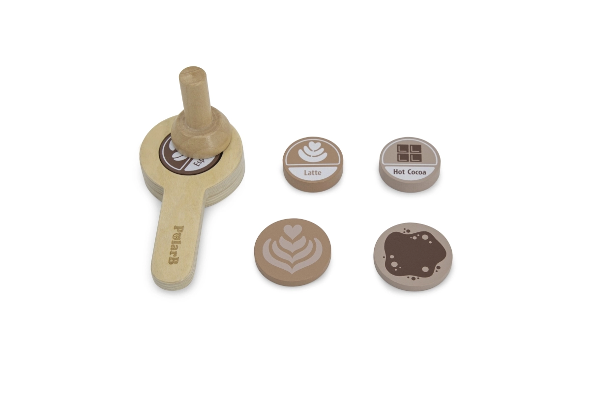 Τα παιδιά θα ενθουσιαστούν που μπορούν να ετοιμάσουν μόνα τους καφέ για τους καλεσμένους. Όπως σε μια πραγματική καφετιέρα, τοποθετείται το κουταλάκι με τον καφέ. Πατήστε το κουμπί για να ξεκινήσει η διαδικασία παρασκευής.