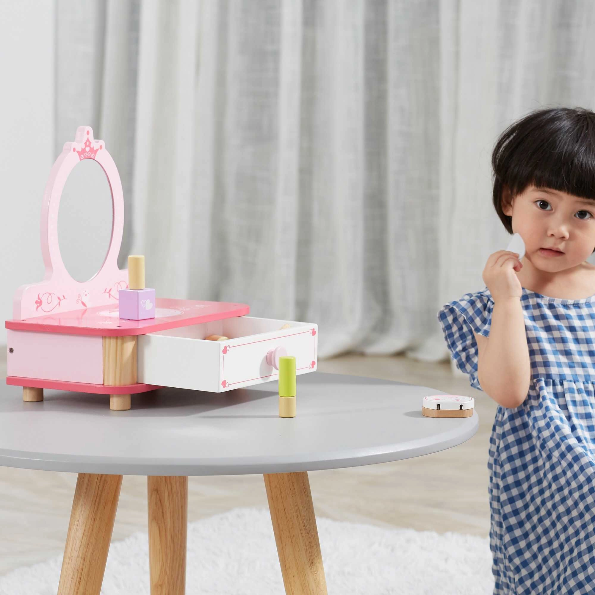 Η ξύλινη τουαλέτα Viga προσφέρει καθρέφτη και ευρύχωρο συρτάρι, όπου οι μικρές πριγκίπισσες μπορούν να φυλάξουν τους θησαυρούς τους. Το ροζ φινίρισμα προσδίδει στο προϊόν κομψή εμφάνιση και ταιριάζει υπέροχα στο παιδικό δωμάτιο.