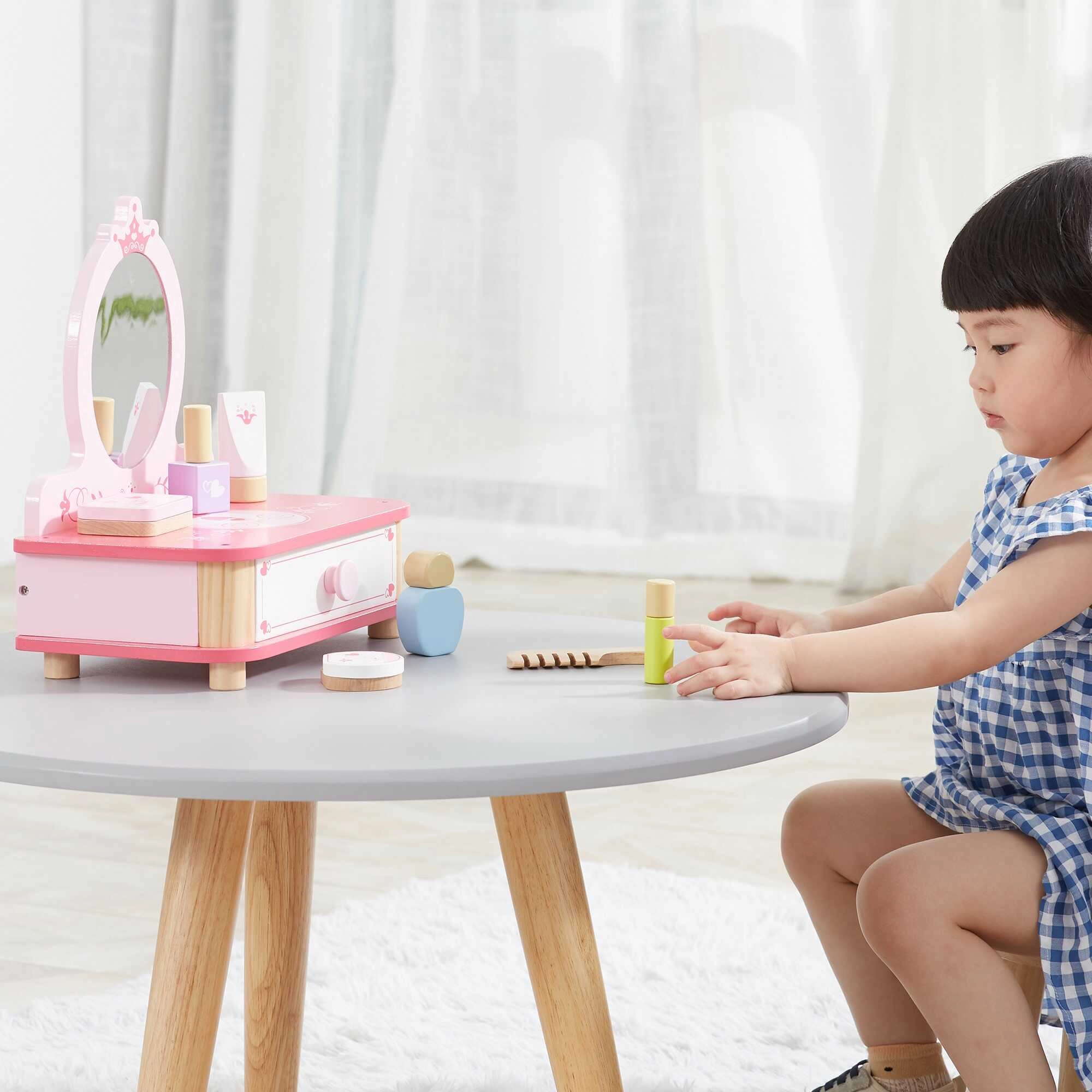 Η όμορφη ροζ τουαλέτα από τη μάρκα Viga είναι το ιδανικό συμπλήρωμα για κάθε παιδικό δωμάτιο. Το σετ περιλαμβάνει καθρέφτη, συρτάρι και ποικίλα ξύλινα αξεσουάρ για τη δημιουργία ενός μαγικού κόσμου γεμάτου φαντασία. Κατασκευασμένη από ποιοτικό ξύλο και βαμμένη με μη τοξικά χρώματα ασφαλή για παιδιά.