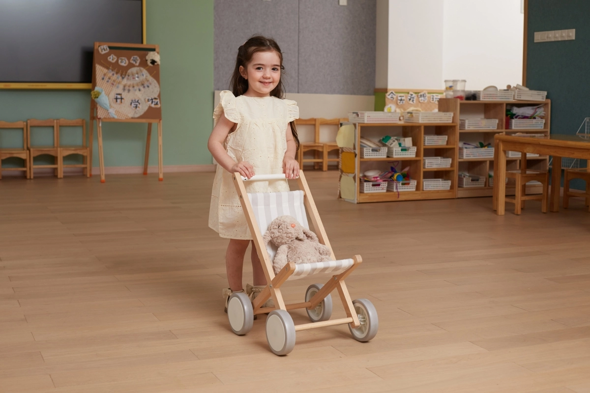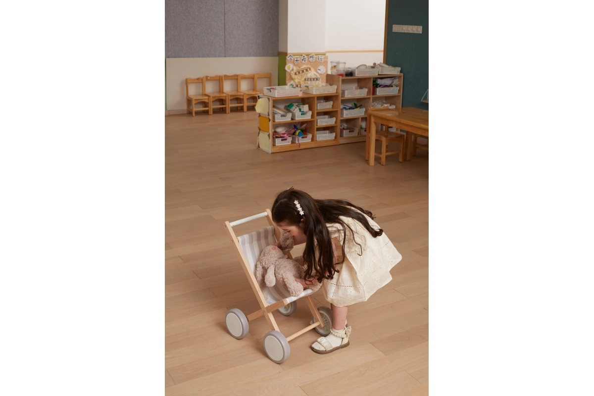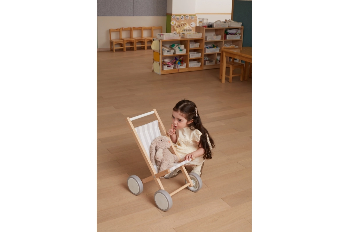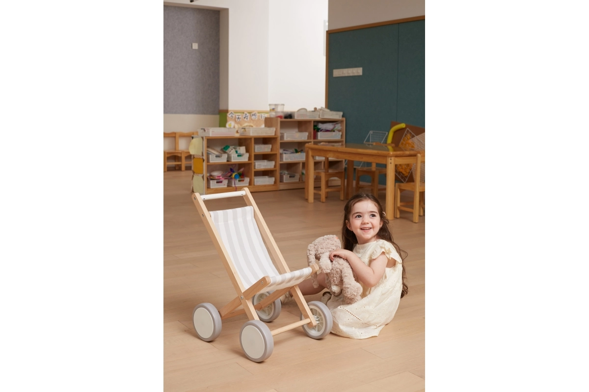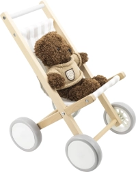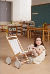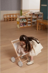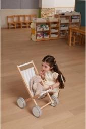 Το ξύλινο καροτσάκι για κούκλες είναι ένα διαχρονικό παιχνίδι που ενθαρρύνει το μιμητικό παιχνίδι, τη φροντίδα και την καθημερινή κίνηση. Η φυσική ξύλινη κατασκευή προσφέρει σταθερότητα και αντοχή, ενώ το υφασμάτινο κάθισμα μεταφέρει άνετα κούκλες και αγαπημένα λούτρινα.