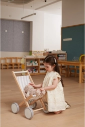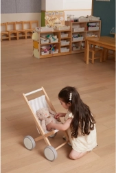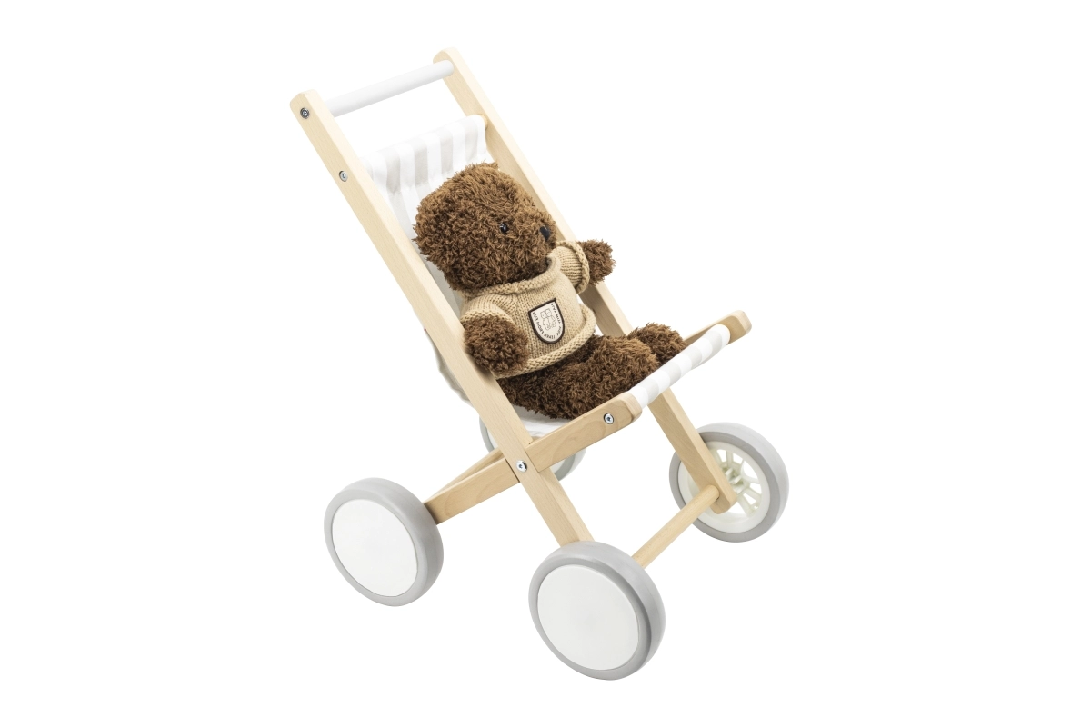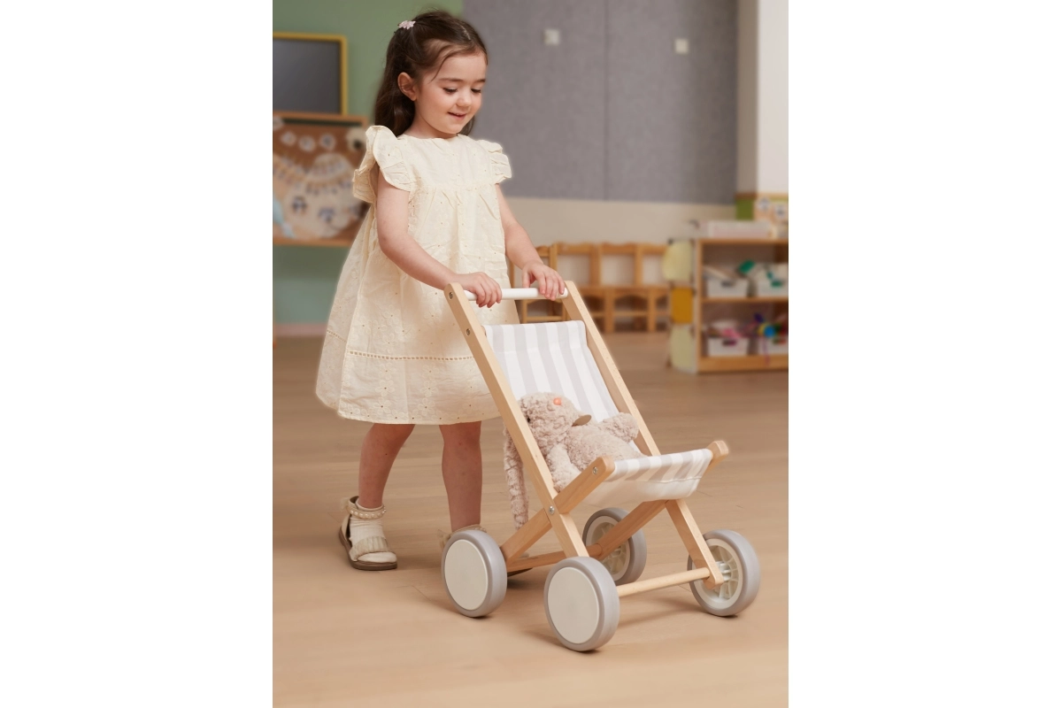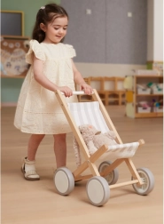 Στιλάτο και σταθερό καροτσάκι για κούκλες από φυσικό ξύλο με υφασμάτινο κάθισμα. Προσφέρει ανθεκτική κατασκευή, αθόρυβους τροχούς που είναι φιλικοί προς το πάτωμα και είναι ιδανικό για ανάπτυξη φαντασίας και κινητικών δεξιοτήτων από 18 μηνών. Οι συμπαγείς διαστάσεις 35 × 45,5 × 55,5 cm ταιριάζουν σε κάθε παιδικό δωμάτιο.